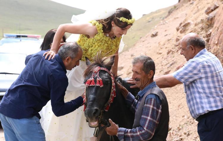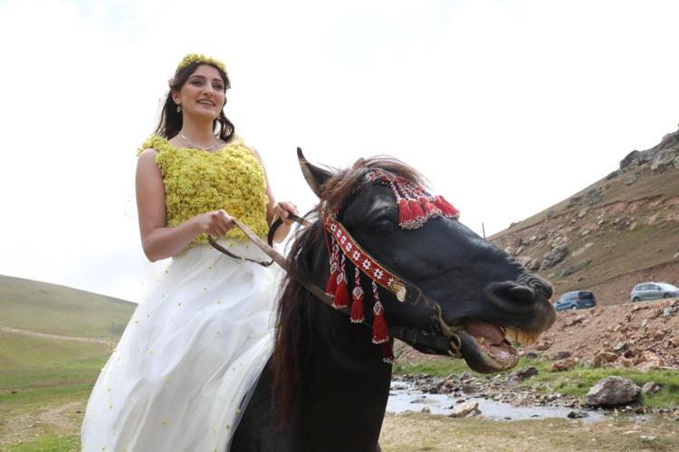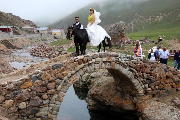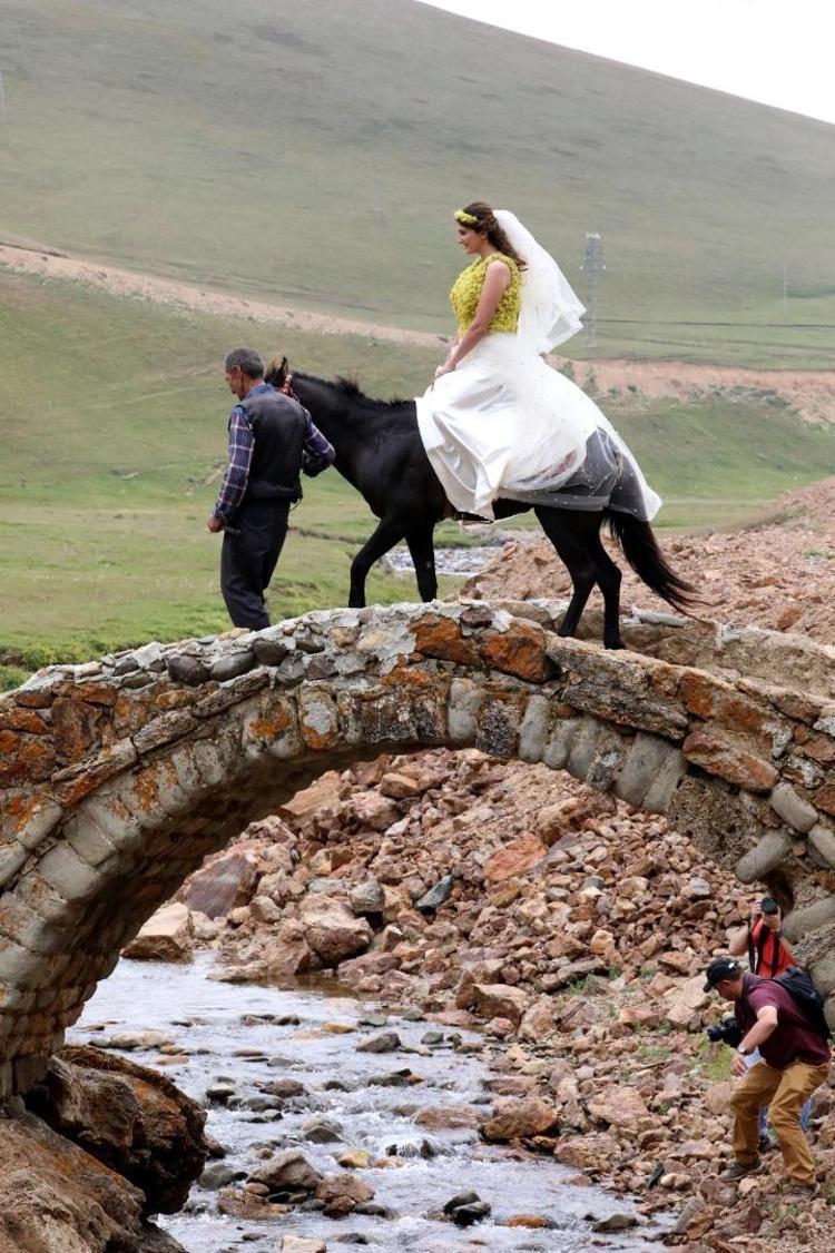 Gümüşhane'de, deniz seviyesinden 1550 metre yükseklikteki Taşköprü Yaylası'nda 'Tarih ve Doğa Konuşuyor' temalı defile düzenlendi. Yöresel kıyafetler ile gelinliklerin sunulduğu defilede yaklaşık 6 bin sarı yayla çiçeği süslemeli gelinlik giyen manken, 570 yıllık Taşköprü'den at sırtında geçti.