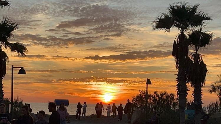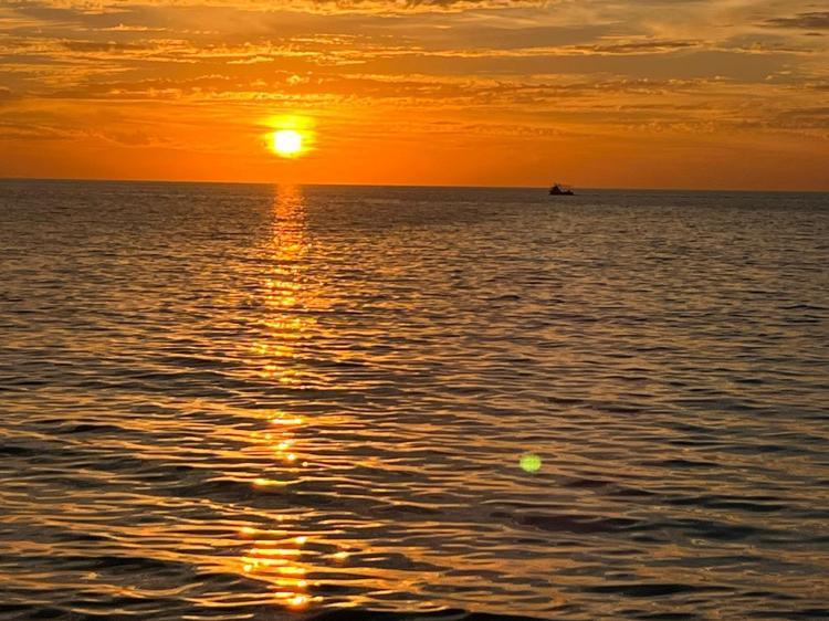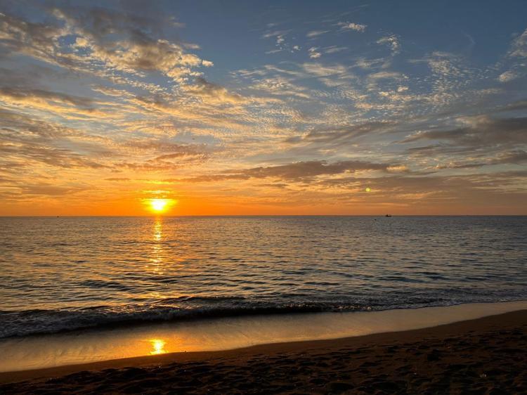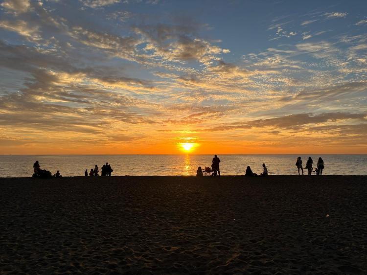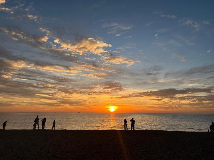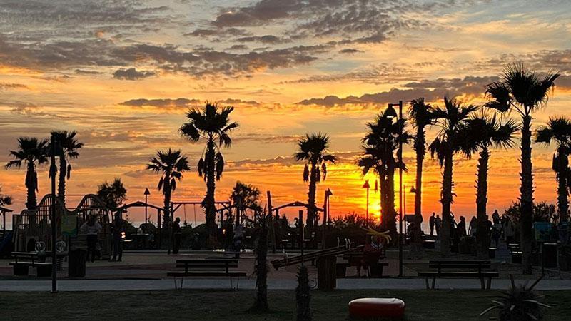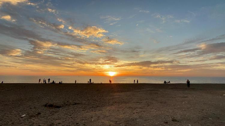 Sahilde gün batımının oluşturduğu eşsiz manzara, görenlerin ilgisini çekti. Denizin üzerindeki yansımalarla birlikte gün batımı görsel bir şölene dönüştü.