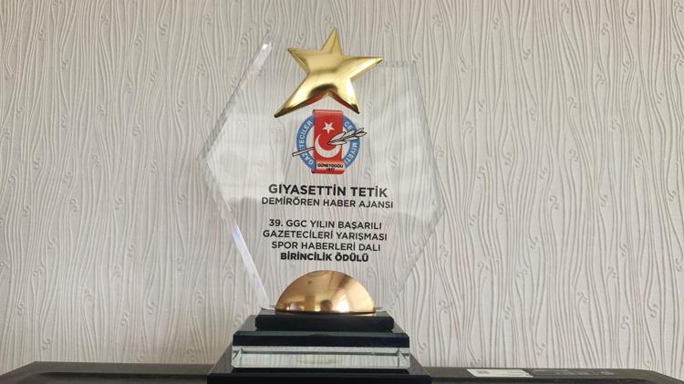 Güneydoğu Gazeteciler Cemiyeti (GGC) tarafından düzenlenen ‘Yılın Başarılı Gazetecileri Yarışması’nda Demirören Haber Ajansı (DHA) Muhabiri Gıyasettin Tetik ‘Altın madalyalı çırak’ haberiyle spor dalında birincilik ödülüne layık görüldü.