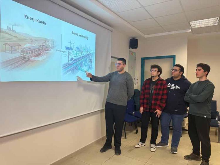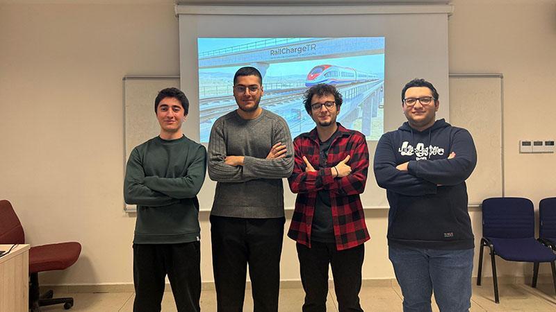 Hacettepe Üniversitesi Bilgisayar Mühendisliği öğrencileri Hasan Can Zorlu, Hüseyin Köroğlu, Serkan Öz ve İstatistik Bölümü öğrencisi Muhammed Taha Keleş, Türkiye'nin demir yolu taşımacılığında enerji verimliliğini artırmayı hedefleyen proje tasarladı. Proje, demir yolu hatlarına entegre edilen yenilikçi enerji aktarım sistemiyle elektrikli trenlerin hareket halindeyken veya duraklama anlarında kablosuz şarj edilmesini öngörüyor. 'RailChargeTR' isimli proje yerli ve sürdürülebilir bir ulaşım teknolojisi projesi olarak akıllı enerji yönlendirme yaklaşımıyla sistem üzerindeki bileşenlerin anlık enerji tüketimlerini analiz ederek, enerjiyi en verimli noktalara yönlendiriyor. Böylece gereksiz enerji kayıplarını önleyerek, toplam enerji tüketimini azaltıyor ve batarya ömrünü uzatıyor. Proje Türkiye'nin 2053 ulaşım vizyonu doğrultusunda çevreci, ölçeklenebilir ve yüksek tasarruf potansiyeline sahip bir çözüm sunmasıyla Ulaştırma, Denizcilik ve Haberleşme Araştırmaları Merkezi Başkanlığı'nın 'Ulaşan ve Erişen Türkiye 2053 Üniversiteler Arası Fikir Yarışması'nda 'Demiryolu' kategorisinde 'En Sektörel Proje' ödülü aldı.