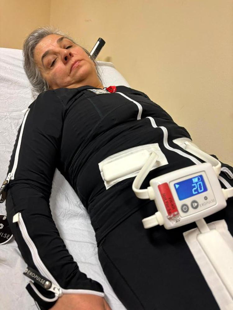 Hacettepe Üniversitesi Fizik Tedavi ve Rehabilitasyon Fakültesi Dekanı Prof. Dr. Özlem Ülger, üzerine 58 elektrot yerleştirile kıyafetin farklı kas gruplarının üzerine temas edecek şekilde hastalara giydirildiğini anlatarak, "Üstü ceket, altı tayt gibi bir kıyafet. Ve tam kasların üzerine bu elektrotları yerleştirerek giysinin tam olarak hastanın üzerine uyumlandırılması sonrasında bir yazılım ile akım uyguluyoruz hastamıza. 1 saat boyunca hastamız bu kıyafetin içerisinde kalıyor. Aynı anda egzersiz yapabilir, hareket edebilir veya yatabilir. Ama bu kıyafetle birlikte gün içerisinde özellikle bel-boyun problemlerini tetikleyecek aktiviteleri yapmalarını istemiyoruz. Mesela ev işlerini yapmasınlar; ama egzersizlerini yapabilirler. 1 saat sonrasında bunu çıkartıyoruz ve farkı zaten ilk olarak hasta bize söylüyor. Ağrılarının azaldığını, şikayetlerin azaldığını çok rahatlıkla ifade ediyor" dedi.