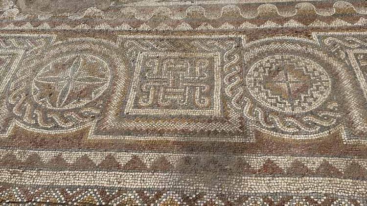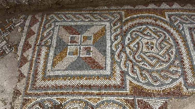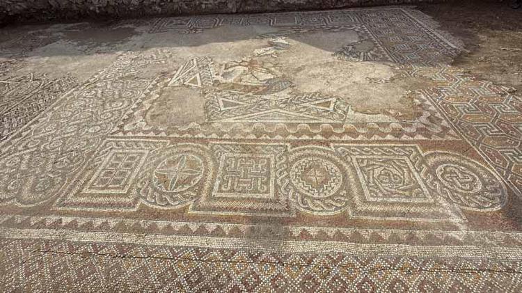 “Mozaikli alanın tam merkezinde ise tavus kuşu yer almakta. İki tavus kuşu antitetik duruşla ortalarında bir su kabı ve su kabından su içerken görülmekte. Mozaiklerde yer yer noksanlar var ama önemli noksanlar değil. Mozaiğin yüzde seksenlik bölümü günümüze sağlam olarak ulaşabilmiş. Literatürde olmayan desenler de ortaya çıktı burada. Mozaiklerde şu ana kadar tespit ettiğimiz dalgalı kurdele motifi var. Sekiz kollu yıldız merkezde işlenmiş ve bu sekiz kollu yıldızın tam ortasına da antitetik duruşlu tavus kuşları sahnelenmiş. Çeşitli geometrik motifler işlenmiş burada. Süleyman düğümleri var panolar içerisinde. Burada gerçekten mozaikler halı deseni gibi işlenmiş. Canlılığını koruyarak günümüze ulaşmış. Şu anda mozaiklerin üstlerini geçici korumaya da alacağız. Bu yılın sonuna kadar ziyaretçilerimizin görebileceği bir şekilde teşhire açacağız. Mozaiklerde ayrıca bir insan figürü de tespit ettik ama bu figürün büyük bir bölümü günümüze noksan olarak ulaşmış. Bu figürün mitolojik ya da bir dini motif olup olmadığı konusunda net bir bilgiye sahip değiliz.”