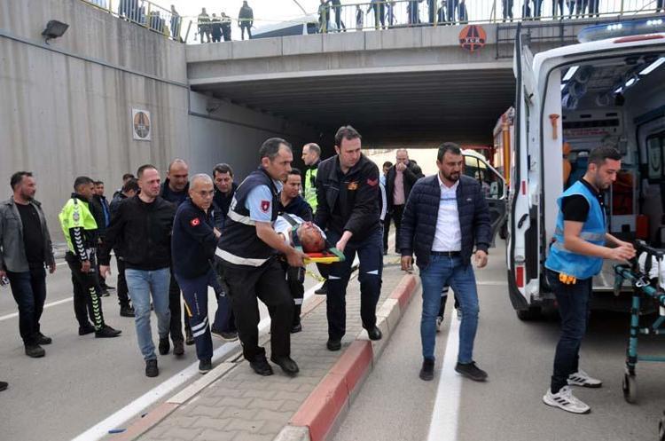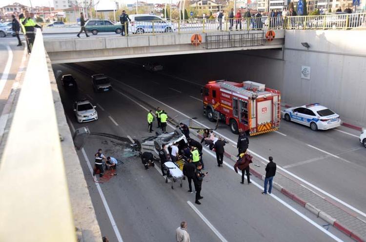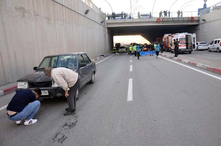 Demir bariyerleri deviren araç tert dönüm, metrelerce yüksekten alt geçitte seyir halinde olan Mahmut Güneş yönetimindeki 70 DD 184 plakalı otomobilin üzerine düştü.