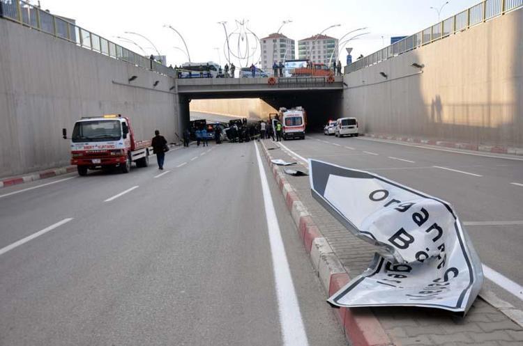 Hafif ticari araç bariyerleri devirip alt geçitteki otomobilin üzerine düştü: 2 ölü, 1 yaralı