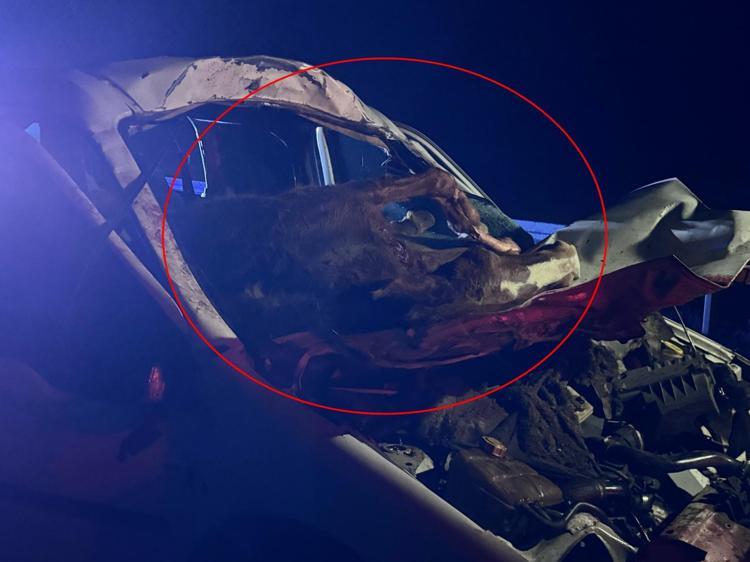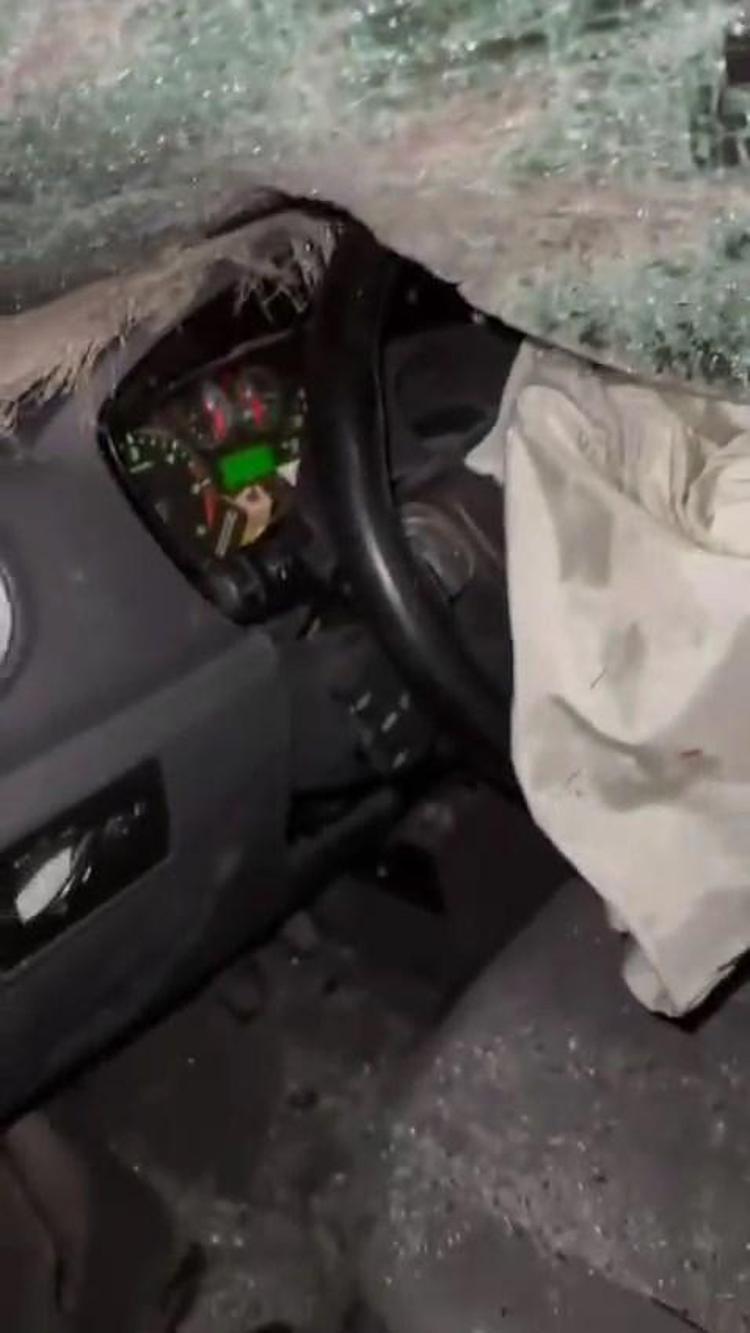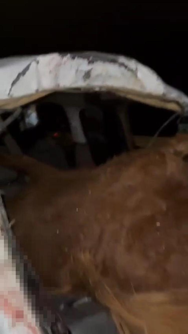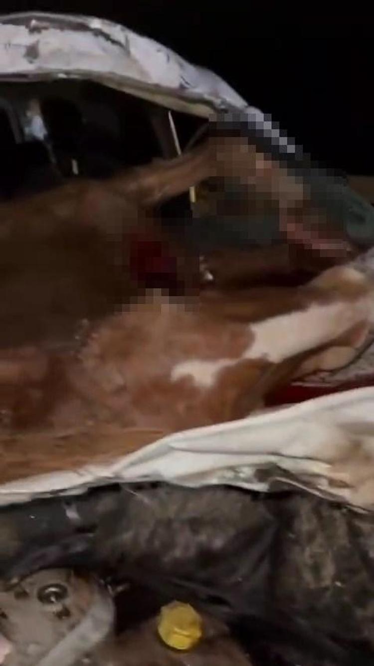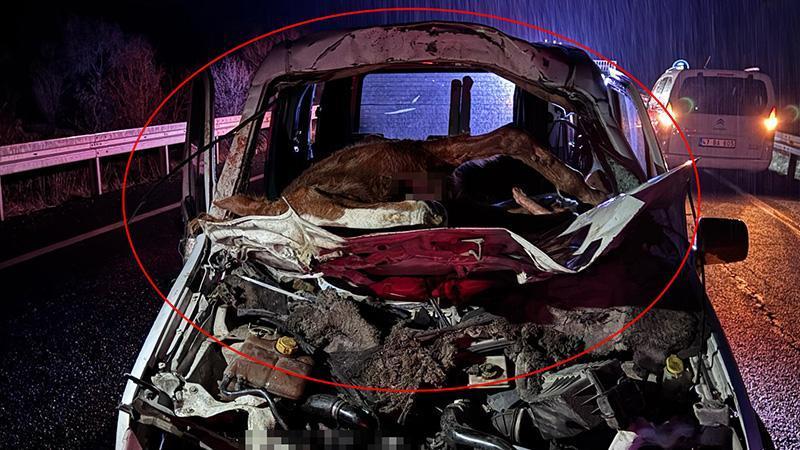 Hafif ticari aracın çarptığı at, ön camdan içeri girdi; sürücü ağır yaralı