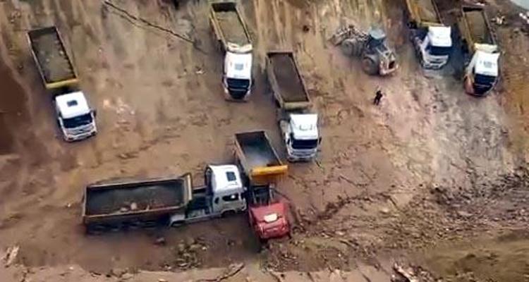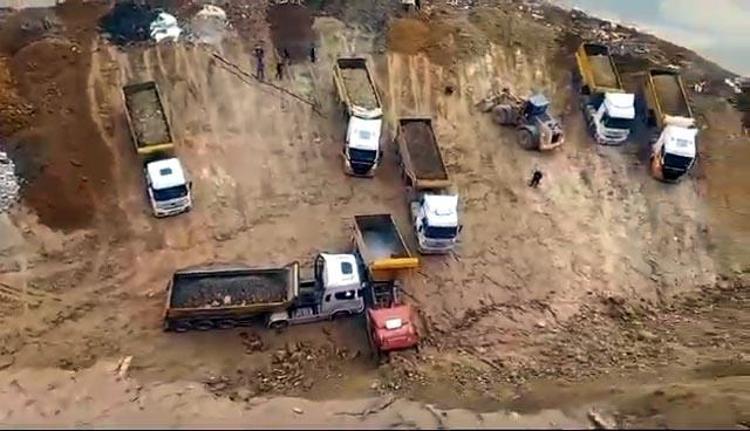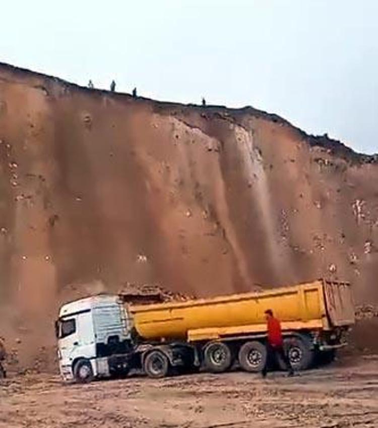 Hafriyat döküm sahasında toprak kaydı, kamyon şoförleri tehlike atlattı