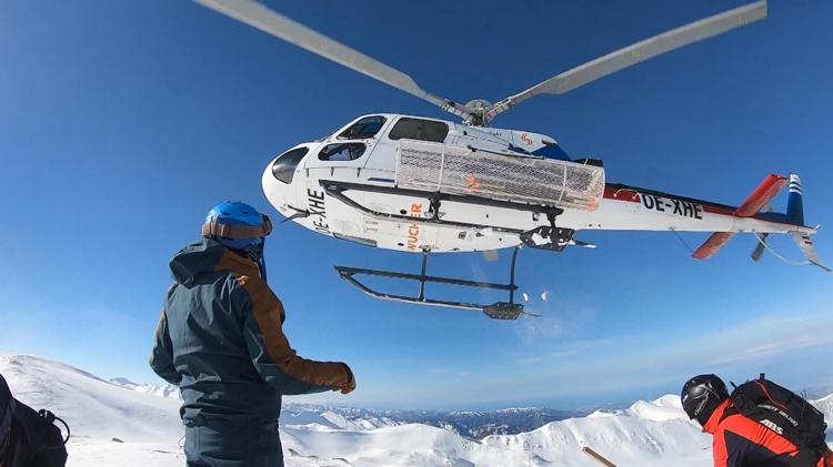 Helikopterle tekrar zirveye bırakılacak olan kayakçılar, gün boyu zorlu ve dik yamaçlardan kayacak.