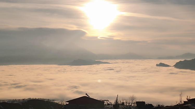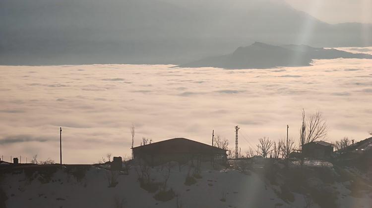 Irak sınırındaki Derecik ilçesinde gece boyunca etkili olan sis, sabah saatlerinde etkisini artırdı. İlçe merkezi, yüksek kesimlerden bakıldığında sis nedeniyle tamamen görünmez hale geldi. Sabah saatlerinde güne sisle uyanan Derecik sakinleri, ilçenin adeta sis bulutlarının altında kaybolduğunu belirtti. Bazı vatandaşlar da oluşan manzarayı cep telefonu kamerasıyla kaydetti.