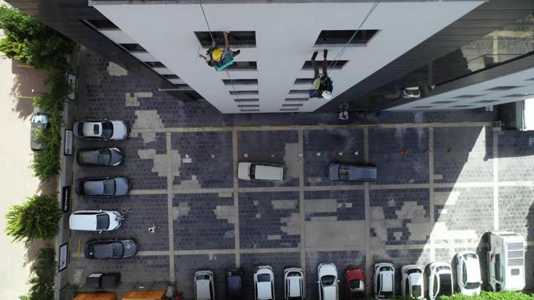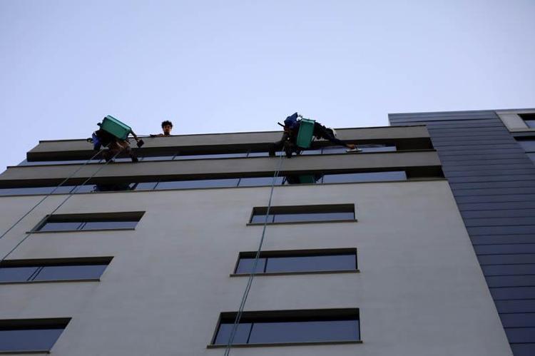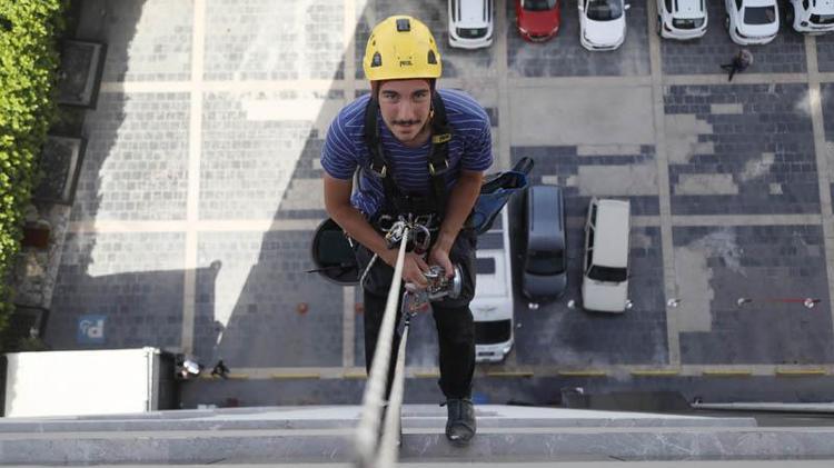 Kentte yüksek alışveriş merkezleri, iş yerleri, kuleler başta olmak üzere dış cephe işlerinde temizlik, boya, küçük tadilatlar, arıza tespiti gibi işlerde çalışmaya başlayan endüstriyel dağcıların hayatı, ortalama uzunluğu 100 metre olan halat ve karabinanın sağlamlığına bağlı.