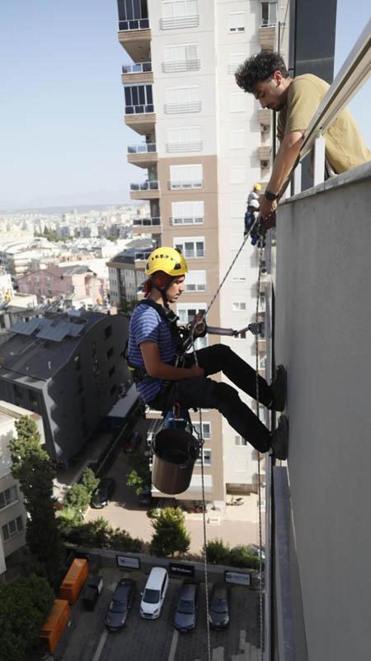 Antalya'da üniversiteden mezun olduktan sonra kendi meslekleri yerine endüstriyel dağcılığı tercih eden 5 arkadaşın mesaisi, halat ve karabinaya bağlı metrelerce yüksekte geçiyor. Ailelerinin önceleri karşı çıktığı işten geçimini sağlayan 5 arkadaş, yüksek binalarda halatla asılarak temizlikten tamir işlerine kadar her türlü işi yapıyor.