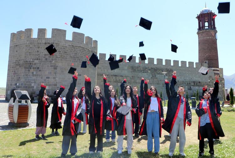 Erzurum'da Osman Gazi Ortaokulu, 2024-2025 eğitim-öğretim yılının sonunda farklı bir mezuniyet törenine imza attı. Tarihi Erzurum Kalesi önündeki törende, halk ozanları öğrencilere sazlı sözlü türküler söyledi. Öğrenciler, tarihi atmosferde keplerini havaya fırlatarak mezuniyet coşkusunu doyasıya yaşadı.