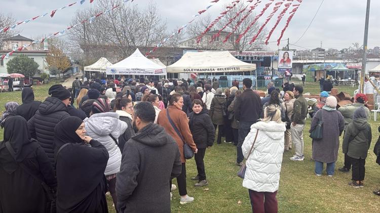 Tekirdağ'da düzenlenen Hamsi ve Mıhlama Festivali'nde yaklaşık 6 bin kişiye ücretsiz 1 ton mıhlama dağıtıldı.