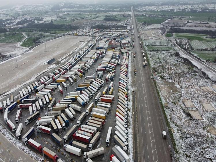 Edirneden Bulgaristan’a açılan Hamzabeyli Sınır Kapısı’nda 11 kilometre TIR kuyruğu oluştu. Soğuk havayla mücadele eden şoförlerden Hayrettin Aynacı (43), “Bulgaristan'da kardan dolayı birçok yerde yolların kapandığını gördük. Bu da buradaki çalışmayı da etkilemiş olabilir” dedi.
