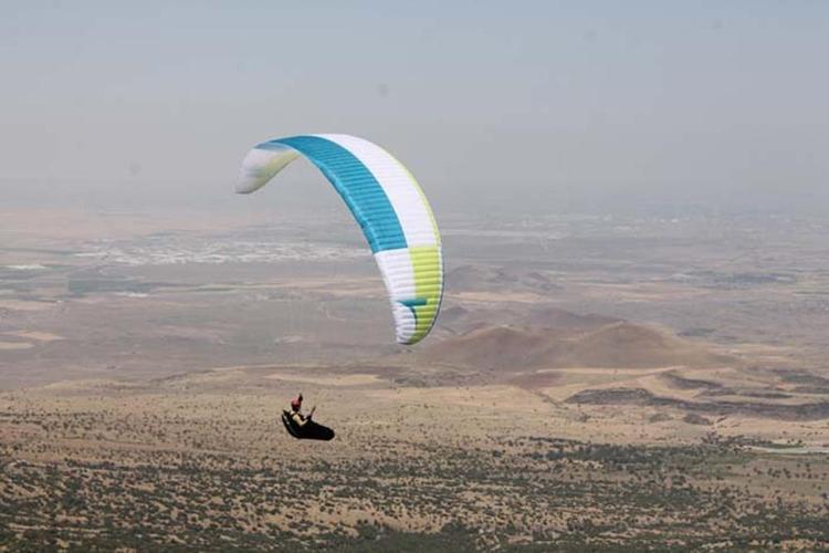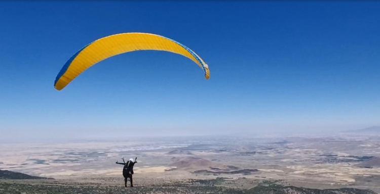 Aksaray'da sporcular 15 Temmuz şehitleri anısına Hasan Dağı'ndan yamaç paraşütüyle uçtu.