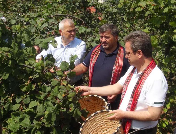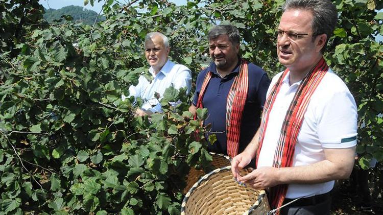 Hasat şenliğinde vali ve belediye başkanı, beline sepet bağlayıp fındık topladı