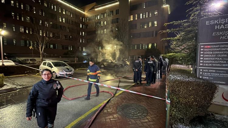Olay, Eskişehir Şehir Hastanesi D blok otoparkında meydana geldi. Otoparkta park halinde olan araçların birinde henüz bilinmeyen bir nedenle yangın çıktı. Hızla büyüyen alevler, park halindeki diğer araca da sıçradı.
