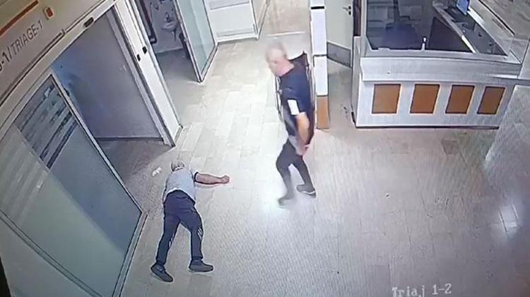 Hastanede arbede; güvenlik görevlisinin kalp krizi geçirdiği anlar kamerada