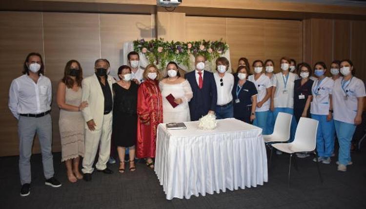 Gelinlik ve damatlık giyen çift, yakınlarının ve hemşirelerin katılımıyla, hastalıkta ve sağlıkta bir ömür mutluluğa imza attı. Çiftin nikah şahitleri ise Prof. Dr. Fahri Şahin ve İzmir Kent Hastanesi Kemik İliği Nakli Merkezi Hematoloji Uzmanı Doç. Dr. Ahmet İfran oldu. Çift ve yakınları, nikahta gözyaşlarını tutamadı.