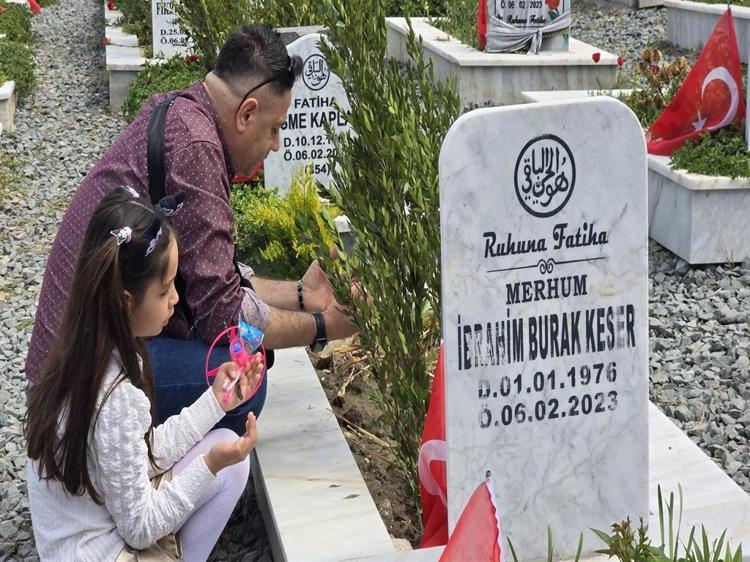 Hatay'da depremde yaşamını yitirenlerin toprağa verildiği Deprem Şehitliği, Ramazan Bayramı'nın birinci gününde ziyaretçilerle dolup taştı. Duaların edildiği mezarlıkta hüzünlü anlar yaşandı.