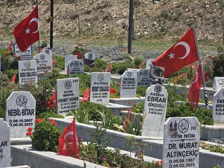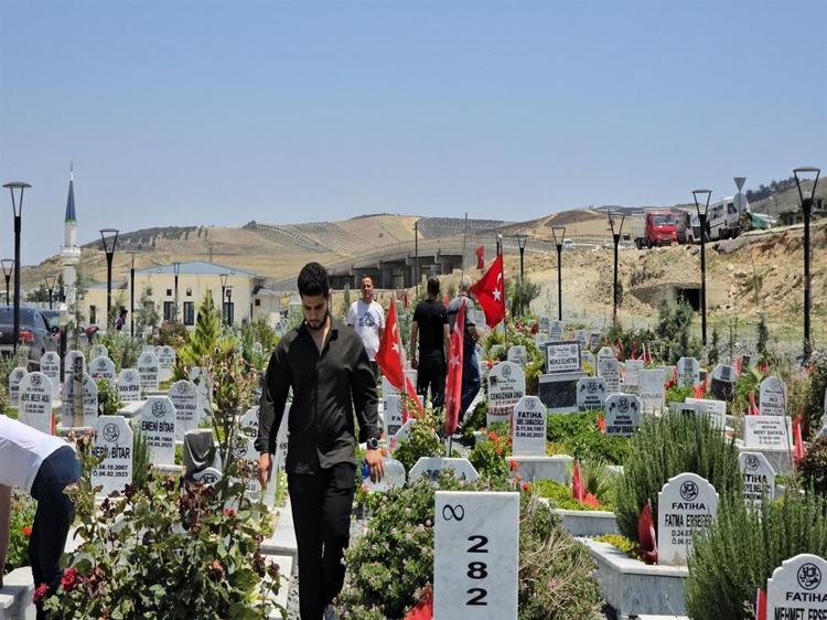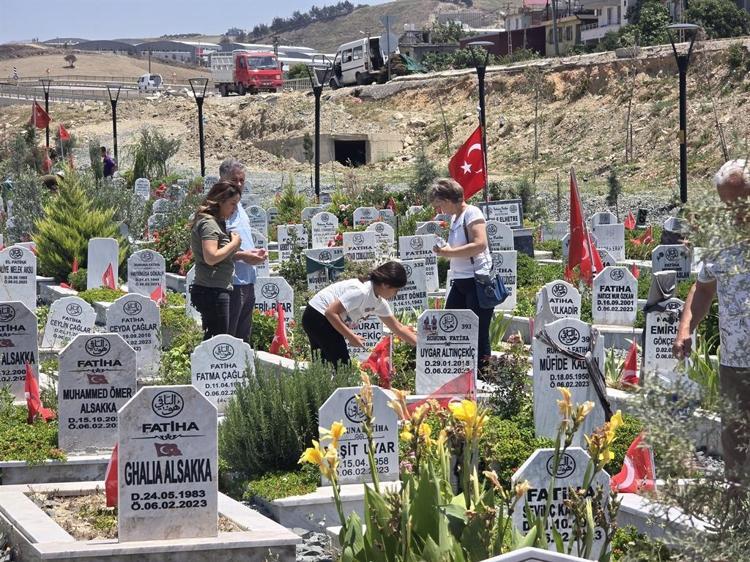 6 Şubat 2023'te meydana gelen Kahramanmaraş merkezli 7.7 ve 7.6 büyüklüğündeki depremlerde 24 bin 147 kişinin hayatını kaybettiği Hatay'da, Kurban Bayramı öncesi mezarlıklar ziyaretçilerin akınına uğradı.