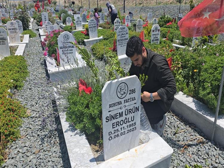 Depremde 6 yakınını kaybeden Serdar Ürün, "Buraya bayram haricinde de sürekli geliyor, temizliğini yapıyorum. Keşke deprem felaketi yaşanmasaydı ama Allah'ın takdiri. Ablam, eniştem, yeğenlerimi kaybettim" dedi.