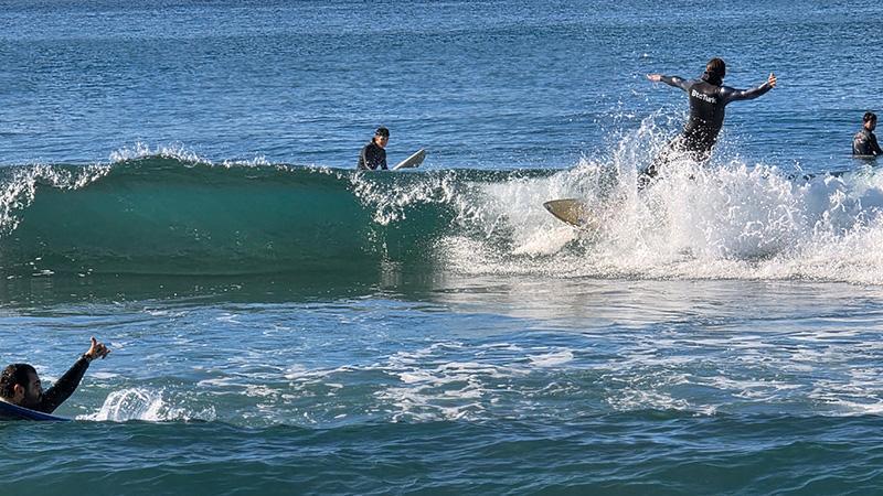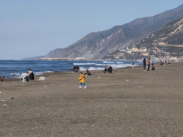 Sahile gelenlerin bir kısmı deniz manzarasına karşı oturarak sohbet ederken, bazıları sahil boyunca yürüyüş yaptı. Hafif dalgalı denizi değerlendiren bazı gençler ise sörf yaparak güneşli havanın keyfini çıkardı.