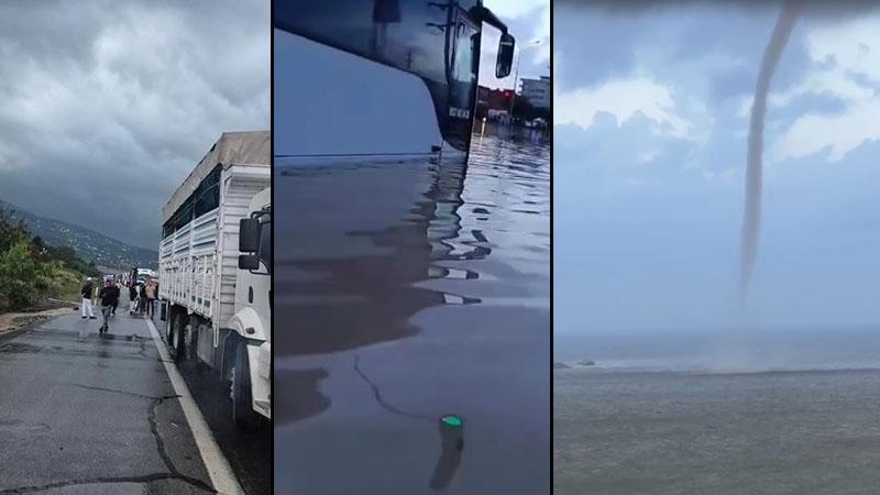 Hatay’da sağanak nedeniyle otoyol çöktü, yolları su bastı, denizde hortum çıktı