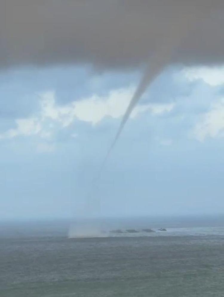 Hatay'ın İskenderun ilçesi açıklarında sabah saatlerinde etkili olan hortumun, denizdeki balık çiftliğini teğet geçtiği görüntüler ortaya çıktı.