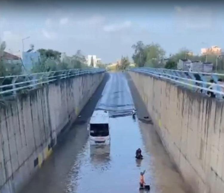 Hatay'ın Payas ilçesinde Şehit Yetkin Erşan Alt Geçidi sel nedeniyle suyla doldu. Akülü aracıyla alt geçitten geçen bir kadın, boğazına kadar gelen suda mahsur kaldı. İhbarla bölgeye sevk edilen itfaiye ekipleri kadını kurtardı.