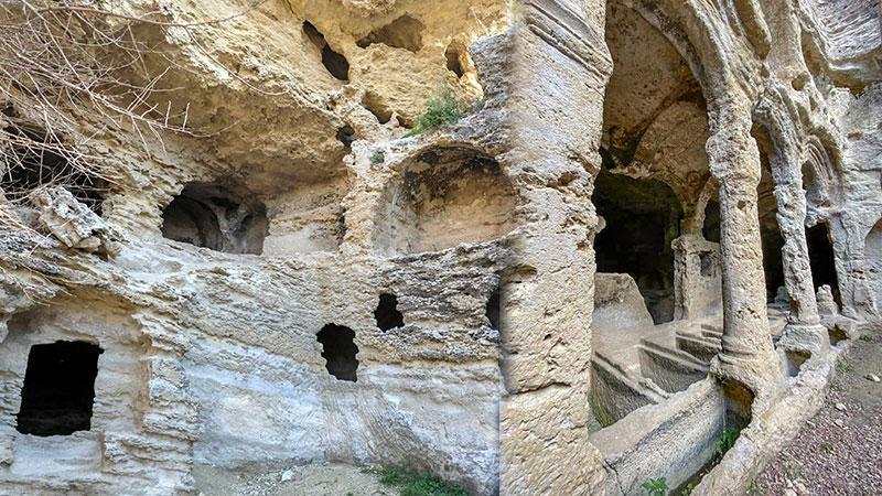 Tünel ile aynı dönemde, tamamı kayanın içine oyularak yapılan Beşikli Mağara da hasar görmeyen yapılardan oldu. Kaya mezarların bulunduğu mağaranın yer aldığı alan, eski çağlarda 'ölüler şehri' olarak adlandırılırken, girişinde de sütunlar bulunuyor.