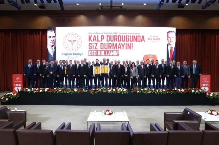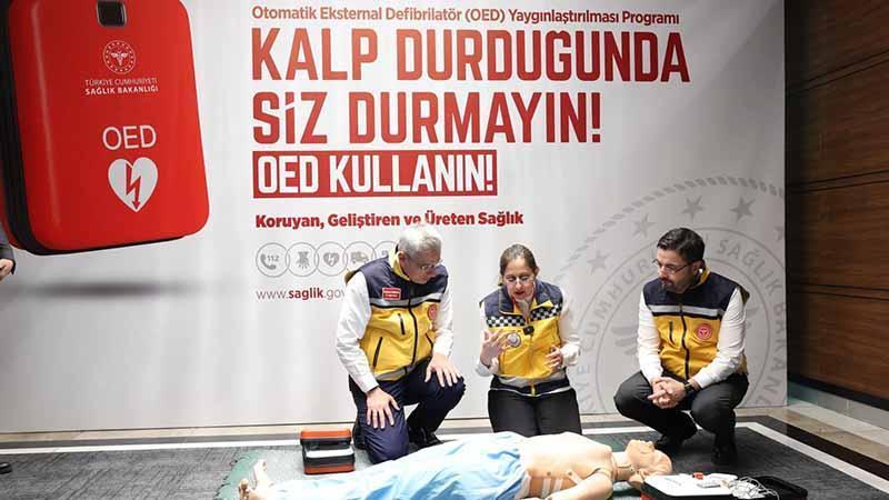 Bakan Memişoğlu, hazırladıkları yönetmeliğe dikkat çekerek, "2026-2028 yıllarını kapsayan stratejik planımız çerçevesinde; havaalanları, AVM’ler, istasyonlar gibi insan yoğunluğunun fazla olduğu alanlarda bu cihazların bulundurulmasını kademeli olarak artıracağız. Nasıl ki ambulanslarımız trafikte milletimizle güçlü bir iş birliği içinde hareket ediyorsa, bu uygulamayla acil sağlık zincirinin ilk halkasını güçlendiriyor, her bir vatandaşımıza 'kalp durduğunda siz durmayın' diyoruz. Bu aynı zamanda bir toplumsal dayanışma çağrısıdır. Amacımız; vatandaşlarımızın ilk yardım bilincini güçlendirerek, her kişiyi potansiyel bir hayat kurtarıcı haline getirmektir. Herkesi hayat kurtarmaya hazır, sağlık ordumuzun gönüllü bir üyesi olmaya davet ediyorum. ‘İlk yardım hayat kurtarır’ anlayışını, artık sadece bir motto değil, toplumumuzun ortak bir refleksi haline getirmeliyiz" ifadelerini kullandı.