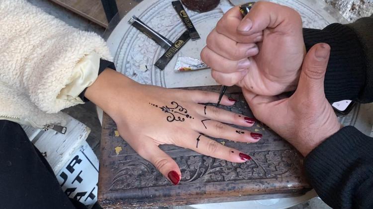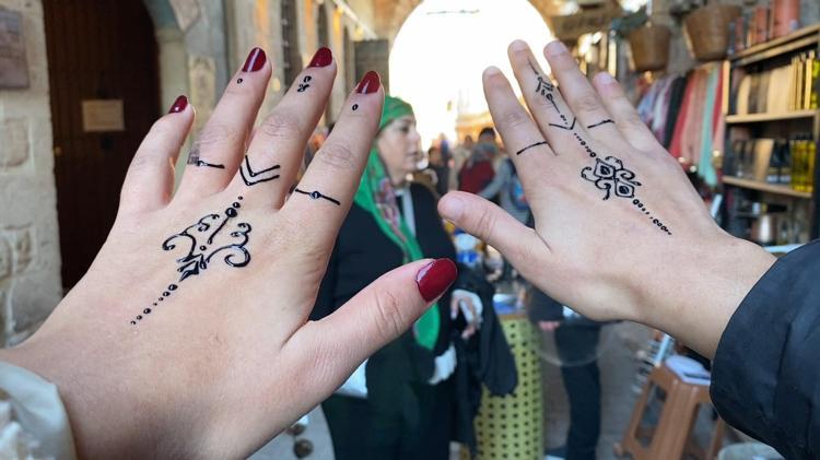 İlçeye gelen turistlerin ellerine kına ile bin yıllık geçmişi bulunan Süryani taş işleme motiflerini çizen ressam Uğur Ertek, "Midyat, yılın her ayı çok güzel. Kışın da güzel oluyor. Sonbaharın etkisi ile biraz da kışa doğru yaklaştık, hava biraz daha ılıman; çok çok soğuk değil. Çok güzel bir şekilde gezilip, görülebilir Midyat. İnsanlar buraya geliyorlar, bizi bulmaya çalışıyorlar. Bizi buldukları zaman, onlara 'dek', kına yapıyoruz. Mardin'in bin yıllık kültürünü elimizden geldiği kadarıyla bu sokakta hala devam ettirmeye çalışıyoruz. Gönlümüzün sevgisiyle, aşkla onlara motifleri inceliyoruz ve yapıyoruz. Süryani kardeşlerimizin taşa yaptığı motifleri ellerine kına yardımıyla, o sanatı işliyoruz. Herkesi Midyat'a bekliyoruz" diye konuştu.