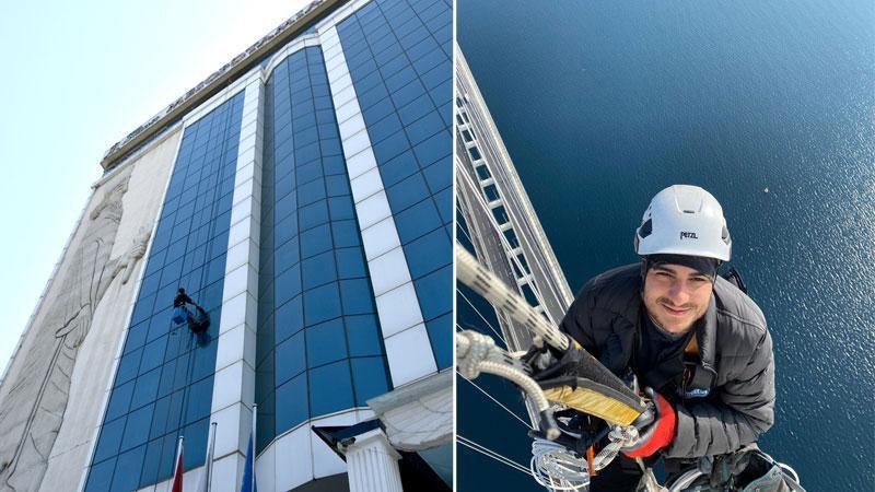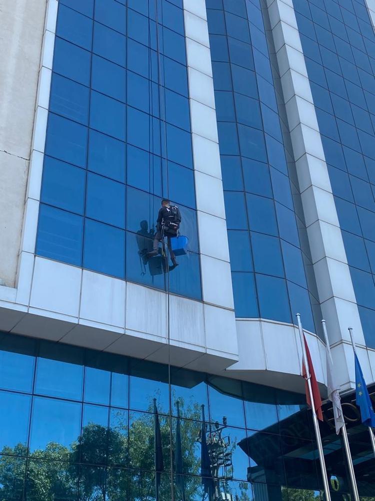 Akkuyu Nükleer Santrali ve Ankara’da birçok resmi kurumun dış cephe temizlik çalışmalarında da görev aldım. Dışarıdan bakıldığında çok riskli bir mesleğimiz var. Gerçekten de öyle ama bize artık normal geliyor. Ankara’da dağcılık eğitimi aldım. Türkiye genelinde bu işi yapan en fazla 1500 kişi ya var ya da yok. Ekmeğimi böyle kazanıyorum. Kullandığımız malzemeler birçok testten geçiyor. Biz de bu malzemelere güveniyoruz. Kendimizi sarkıttığımız ip, 3,5 tonluk ağırlıkta bile kopmuyor. Sadece temizlik görevlisi gibiymişiz gibi görünüyoruz ama öyle değil. Hem dağcılık eğitimini aldık hem de yapılardaki onarım işlerini de yapabiliyoruz. Aslında üç dört mesleği aynı anda yapıyoruz. Yüksek yapılarda cam silmenin yanı sıra fabrika montajları, dış cephe giydirme ve kaya düşürme işlerde de görev alıyoruz.