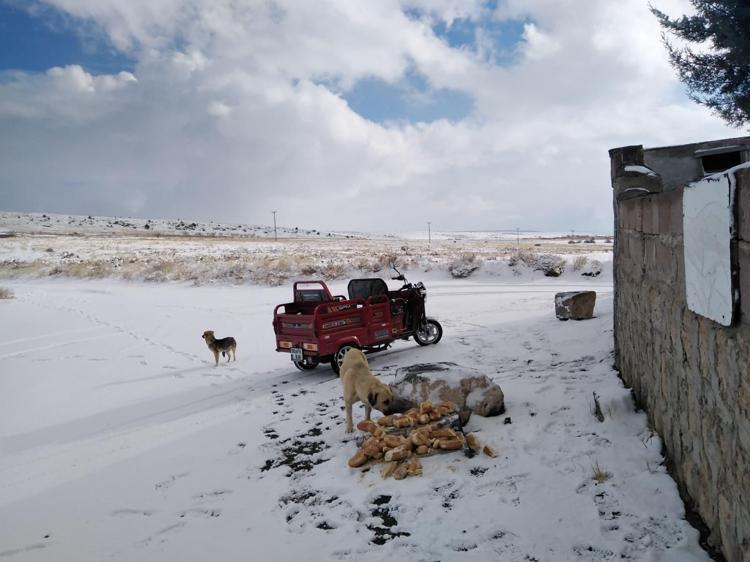 Hayvanlar için elinden geleni yaptığını ifade eden Mevlüt Şen, "Hayvanlar aç kalmasın, susuz kalmasın diye geliyorum. Kuşlar için buğday getiriyorum. Köpek yavrulamış, yiyecek ve içecek yok. Kış demeden çıktım, geldim. Araba olmadığında motosikletle geliyorum.