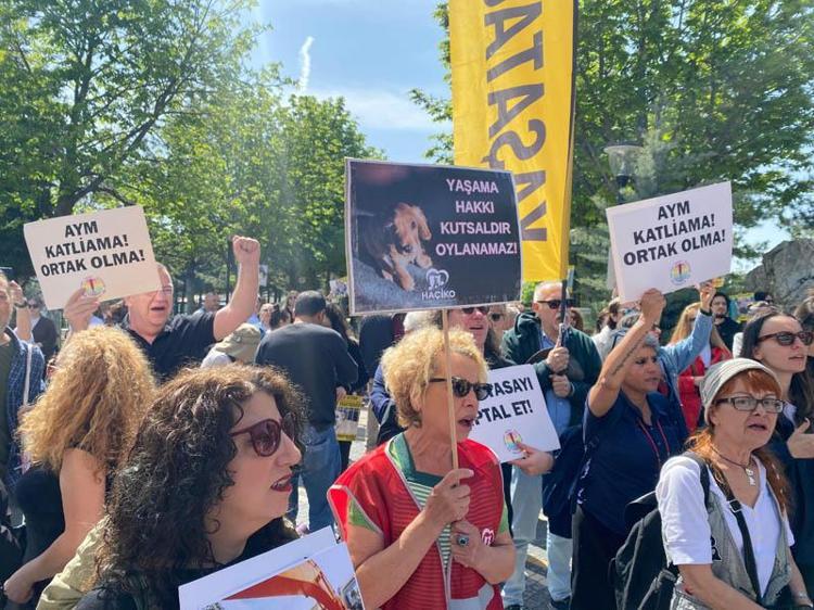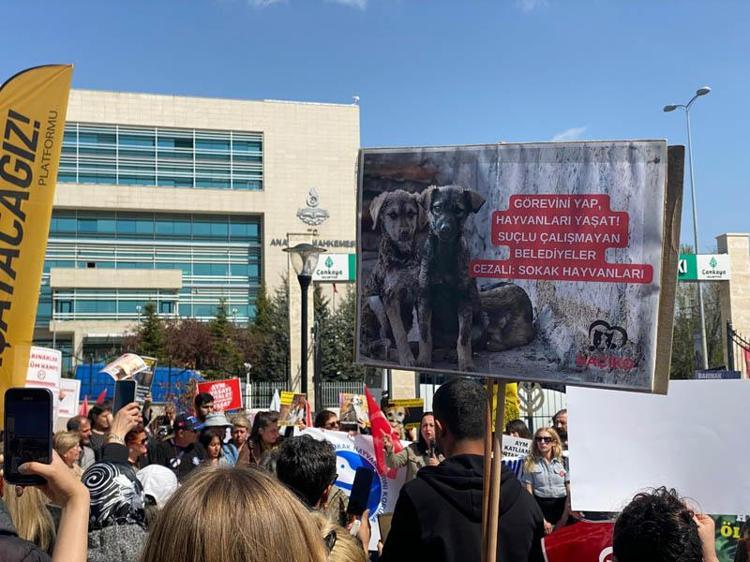 Anayasa Mahkemesi'nin (AYM), Hayvanları Koruma Kanunu'nda Değişiklik Yapılmasına Dair Kanun'na ilişkin talepleri görüşmesi üzerine, hayvanseverler AYM önünde nöbet başlattı.