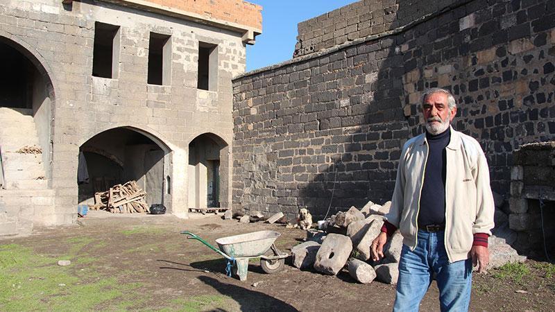 Diyarbakır’ın Sur ilçesinde 2015 yılında yaşanan hendek ve barikat olaylarında Mehmet Abiş’in (62) zarar gören tescilli tarihi evi, definecilerin talanına uğradı, taşları ise çalındı. Olaylarda bitişikteki 2 evi de yıkılan Abiş, tarihi evi daha fazla zarar görmesin diye çocuklarıyla birlikte nöbet tutmaya başladı.