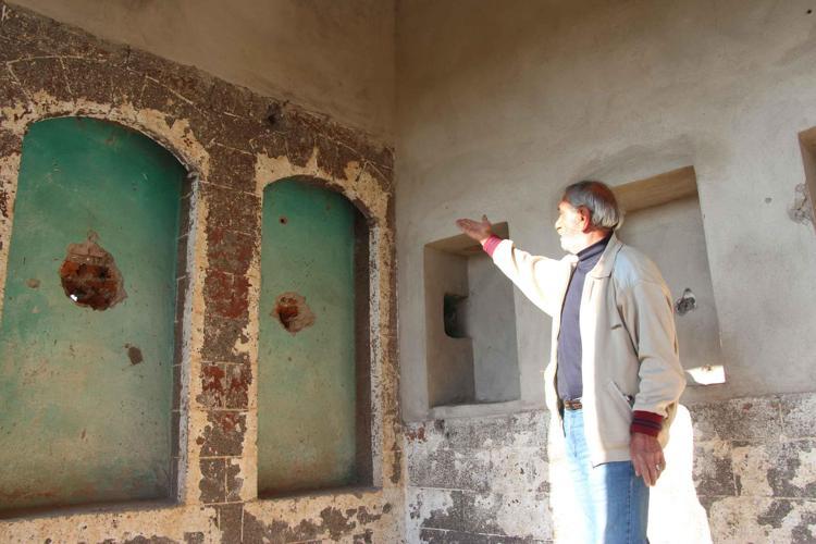 “Bu evin arkasında 2 tane yeni evim vardı. Birini 1994’te, diğerini ise 2008’te yaptım. Birini hanımıma yaparak tapusunu da onun adına yaptırmıştım. Rahat bir şekilde o evlerde kalamadan yıkıldılar. Evimin her tarafında roket ve mermi izleri var. Dışarıdan sıkıyorlardı. O zaman evin ön tarafında yüzleri kapalı 4 kişi oturuyordu. Evimi neden tarıyorsunuz, diye sordum. Bana ‘amca biz hedefe sıkıyoruz’ dediler. 2’inci gece yine sıktılar. Çıktığımda duvarın arkasından bir tanesi diğerlerini çağırarak ‘gelin, gelin bu adam korkmuyor’ dedi. Korksaydım 59 yıldır burada yaşamazdım.”