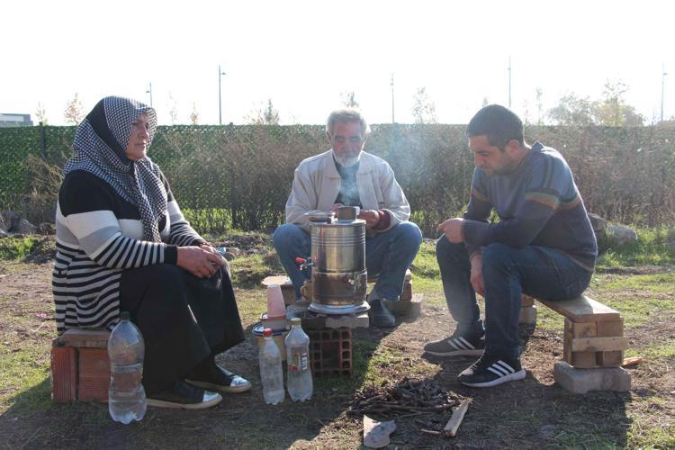 2 yıl önce evinin taşlarının çalındığını belirten Mehmet Abiş, “Kamyonlarca evimin taşları gitti. Evime zarar vermemeleri ve altın bahanesiyle yıkmamaları için 2 yıldır taşların ve evimin nöbetini tutuyorum. Temelden çıkan taşları kepçeyle topladık. Bunları götürmesinler diye el arabasıyla toplayarak bir yere bırakıyorum” diye konuştu.