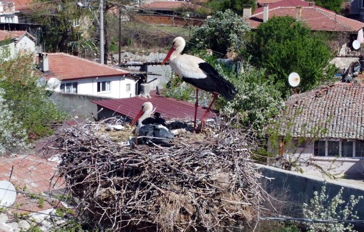 Her baharda gelen leylekler 'İsmayıl' ve 'Fatme' lisenin maskotu oldu