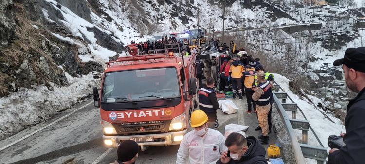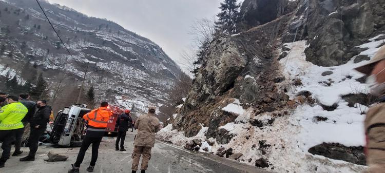 Trabzon'da Vakfıkebir- Tonya karayolunda, meydana gelen heyelanda kopan kayaların üzerine düştüğü kamyonetteki 4 kişi, hayatını kaybetti.