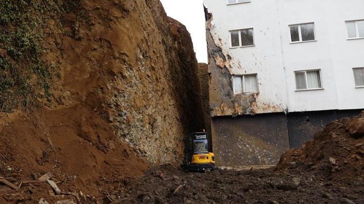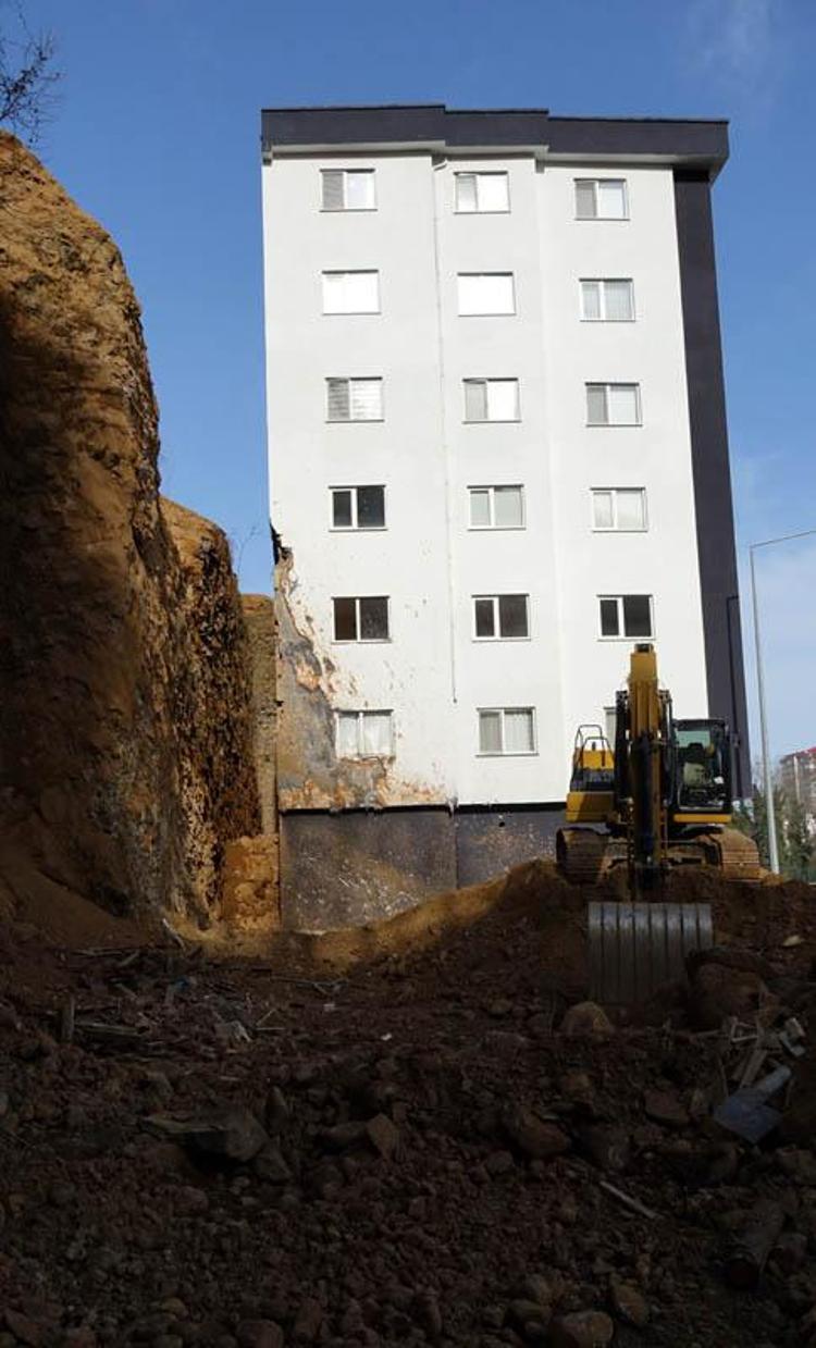 Çevresinde hafriyat temizliği süren, iş makinesiyle açılan dik yamacın bir bölümü riskten arındırılan binada; kolon güçlendirme ve onarım çalışmalarına başlanılacağı belirtildi. Korku ve tedirginliği süren binadaki yaklaşık 70 kişi, 90 derecelik eğime sahip yamacın önüne yüksek güvenlikli istinat duvarı inşa edilmesi çağrısında bulundu.