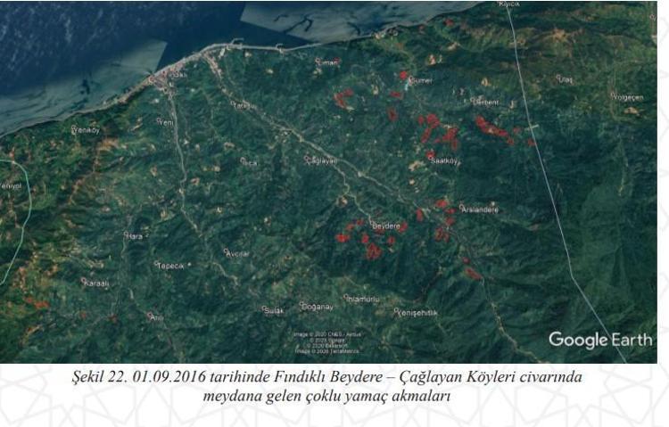 Bölgede sürdürülen çalışmayla heyelan risk alanlarının belirlendiğini kaydeden Prof. Dr. Kaya, “Toprak kayması olayının meydana gelmesinin en büyük nedeni bölgemizin içinde bulunduğu yoğun topografik şartlar ve jeolojik koşullar bitki örtüsünün heyelan türü olayları tetiklemesine yol açacak özelliklere sahip olmasından kaynaklanmaktadır.
