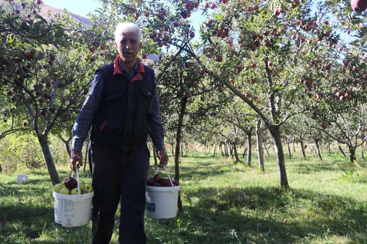 Mahmut Çoban "Ekinli köyünde bulunan dededen, babadan kalma bir arsama hobi olarak elma fidanları diktim. Allah'a şükürler olsun bu yıl verim çok iyi. Burada artık eşe, dosta dağıtımından ziyade pazarlama sistemi oluşuyor. Burada en büyük sıkıntımız, pazar ortamının olmamasıdır. Bunun için değerlendiremiyoruz. Umarım sağlıklı bir pazar ortamı oluşturulur. Bizler hobi amaçlı yapıyoruz ama bizlerden ziyade ticaretini yapan, bu işlerle iştigal edenler, bununla hayatını idame eden kişiler çok daha rahat, daha sağlıklı ürünler elde edecekler. 4 dönümdeki arsamda ağırlıklı elma çeşitleri yetiştiriyorum. Golden, Arap kızı, Starking ve Arjantin türlerini yetiştiriyorum. Bu yıl rekoltemiz yüksek. Yaklaşık 7-8 ton civarında ürün elde ettik. Bunları da iç piyasada satışa sunuyoruz" dedi.