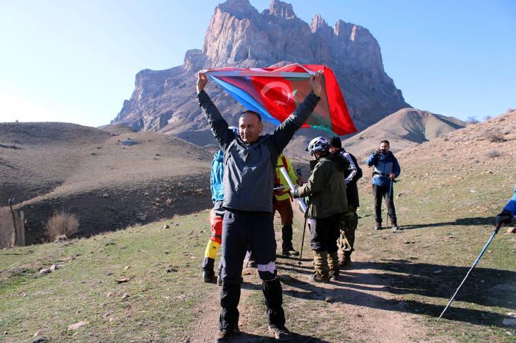 Bir grup dağcı, Nahçıvan'daki 2 bin 415 rakımlı Haça Dağı’na tırmandı. Dağın zirvesinde ay- yıldızlı Türk ve Azerbaycan bayraklarını açan dağcılar, şehitler için dua okudu.