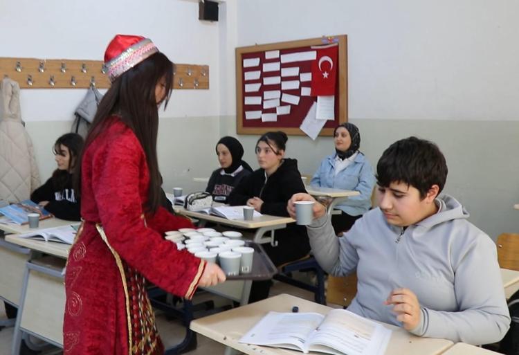 Milli Eğitim Bakanlığı’nın ramazan ayı boyunca okullarda öğrencilerin milli ve manevi değerlerini geliştirmeye yönelik eğitsel ve sosyal etkinlikler uygulanacağı konusundaki yazısı doğrultusunda Erzurum’un Oltu ilçesindeki İbn-i Sina Mesleki ve Teknik Anadolu Lisesi öğrencileri ‘Hoş geldin Ramazan’ etkinliği düzenlendi. Yöresel kıyafetler giyen öğrenciler manilerle sınıfları gezip, ramazan şerbeti ve hurma ikram etti. Sınıf ziyaretlerini tamamlayan öğrenciler, okul önüne kurdukları stantla bölge halkına da şerbet ve hurma dağıttı. Davul çalıp maniler söyleyen öğrenci, ilgi çekti.