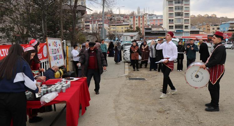 Erzurum’un Oltu ilçesindeki İbn-i Sina Mesleki ve Teknik Anadolu Lisesi’nde düzenlenen ‘Hoş geldin Ramazan’ etkinliğinde öğrenci ve vatandaşlara manilerle hurma ve şerbet ikram edildi.