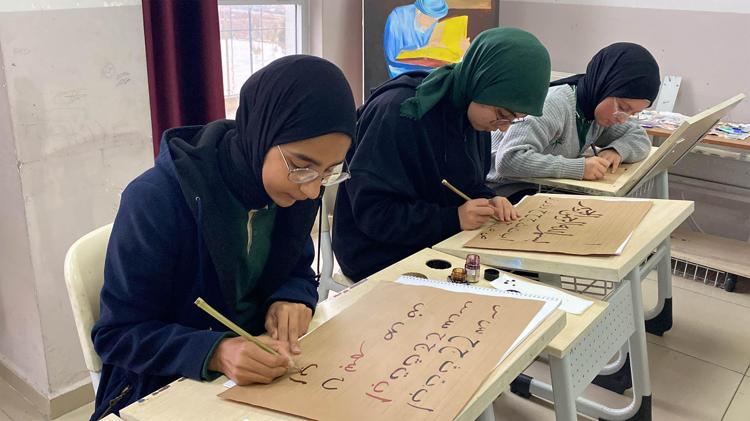 Mardin’de Midyat Fen Lisesi’nde İlçe Milli Eğitim Müdürlüğü’nün de desteğiyle kurulan kaligrafi ve hat sanatı atölyesinde, Kur'an-ı Kerim harflerinin tevhit inancı ve estetikle birleşimiyle meydana gelen ve Türk İslam sanatlarından biri olan ‘hüsnühat’, öğrencilerin ellerinde yaşatılıyor.