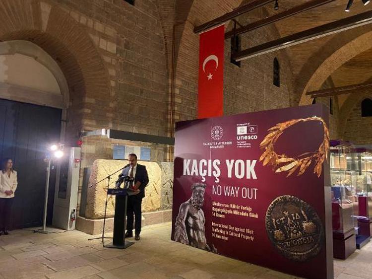 'Birleşmiş Milletler Eğitim, Bilim ve Kültür Kurumu (UNESCO) Uluslararası Kültür Varlığı Kaçakçılığıyla Mücadele Günü' kapsamında, Türkiye’nin yurt dışından iadesini gerçekleştirdiği Anadolu menşeili kültür varlıkları ve yurt içinde kurtarılıp restorasyonu tamamlanan eserler, Anadolu Medeniyetler Müzesi'nde ‘Kaçış Yok’ isimli sergide ziyaretçilere sunuldu. Londra Heathrow Havalimanı’nda bir kişinin üzerinde bulunarak, Türkiye’ye iadesi sağlanan Herakles heykeli, İskoçya’nın Edinburgh kentinde bulunan M.Ö. 4’üncü yüzyıla ait Batı Anadolu Medeniyetleri kökenli Altın Taç, Hırvatistan ve Macaristan’dan iadesi sağlanan çeşitli altın tabak, altın kaşık, sikke, süs eşyaları ve bronz aynanın bulunduğu eserler dahil toplamda 897 parçanın yer aldığı sergi, 1 ay boyunca ziyaret edilebilecek.