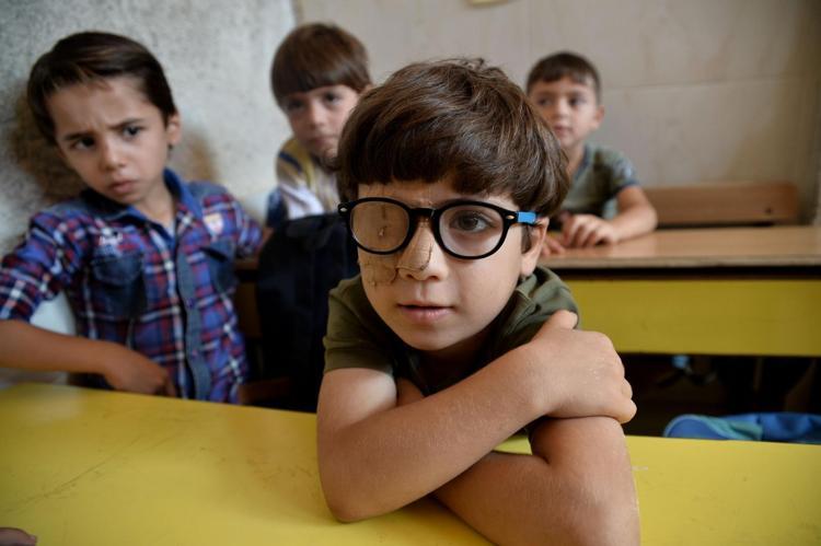 Halep'teki tahliyeler sırasında İdlib kırsalına ailesi ile birlikte yerleşen ve okula ilk adımını atan Muhammed Halife, biran önce gözünün açılmasını istiyor.