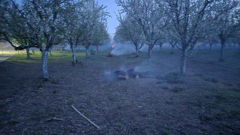 Kasımcan köyünde üretim yapan Arslan Turan ise yöntemin geçmişten bugüne kullanıldığını vurgulayarak, "Sabahın 02.00 ile 05.00 saatleri arasında tütsüleme yaparak donun etkisini azaltmaya çalışıyoruz. Bu yöntem büyüklerimizden bize miras kaldı. İnşallah biz de faydasını görürüz" diye konuştu.
